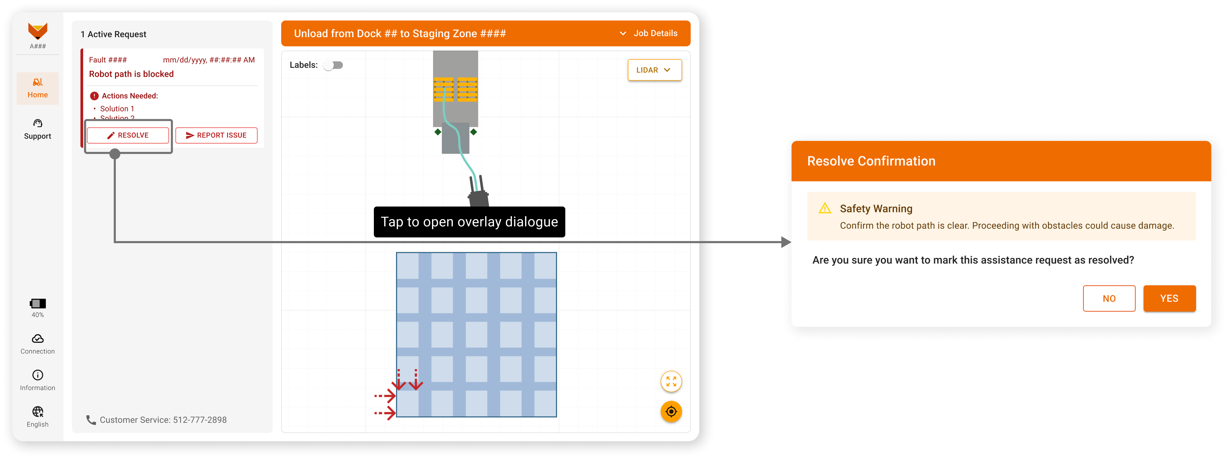 After users remove all obstacles and choose to resolve the issue, a warning confirmation appears. I replaced the popover with a dedicated subpage, allowing users to interact with the map for a double check and prevent overlapping issues.