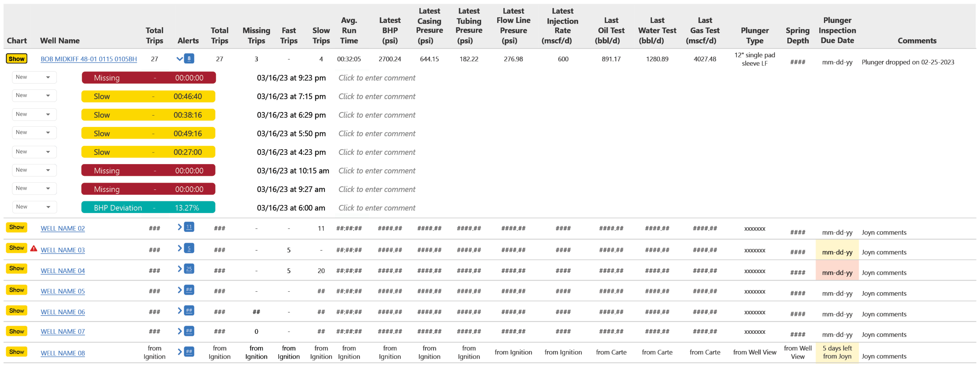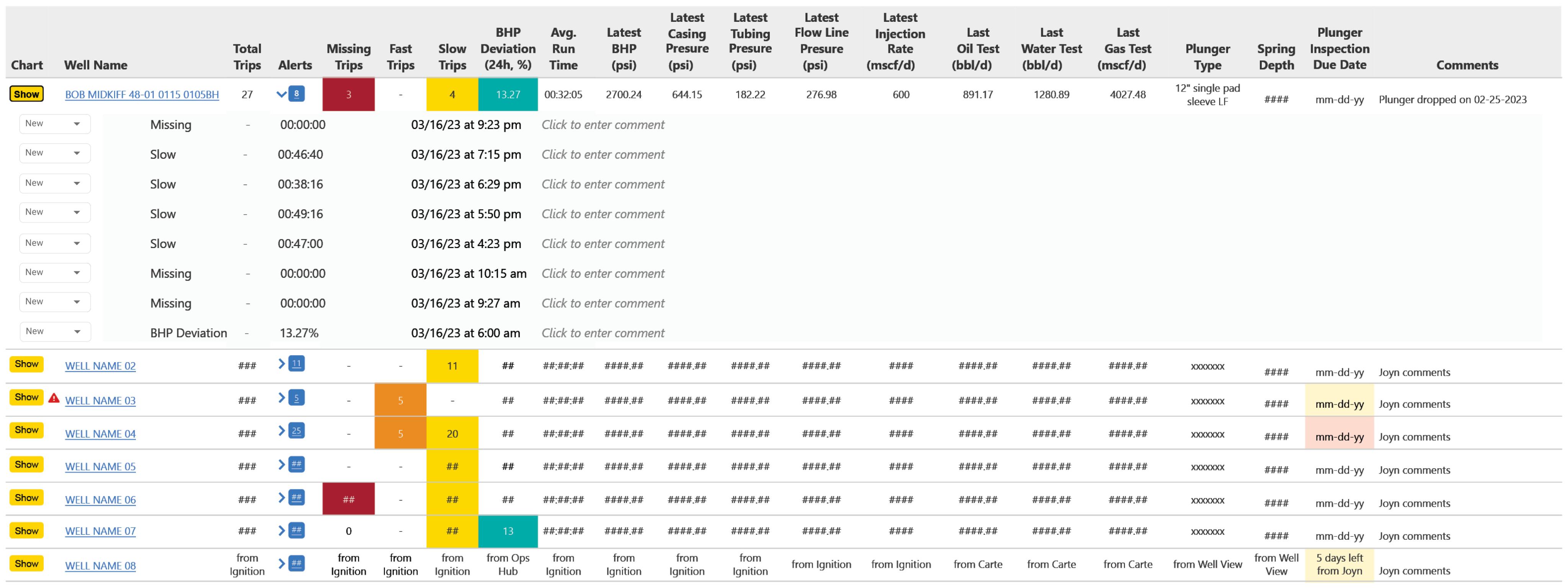 Focuses on overall well conditions, making it easier for users to see a summary of each alert type across all wells.